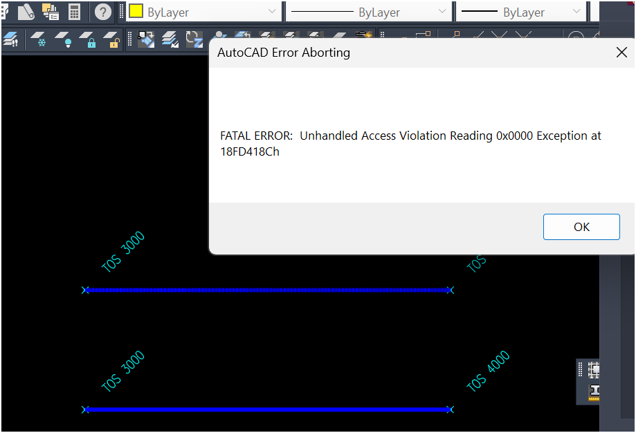 April 13, 2026, 3:02 p.m. Elevation Check: Bad Defline(s) Corrupt TOS deflines detected Erase and re-insert any deflines with yellow circles at its ends then try again FATAL ERROR Unhandled Access Violation Reading 0x0000 …