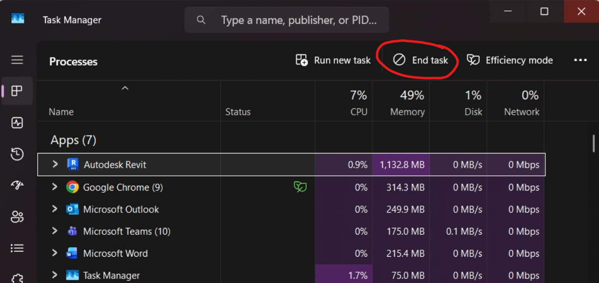 Please be aware that closing Revit will likely not save your work, and if you continue to have issues with loading the Revit toolbox / your computer acting slow, a computer reboot / restart may be recommended as well.