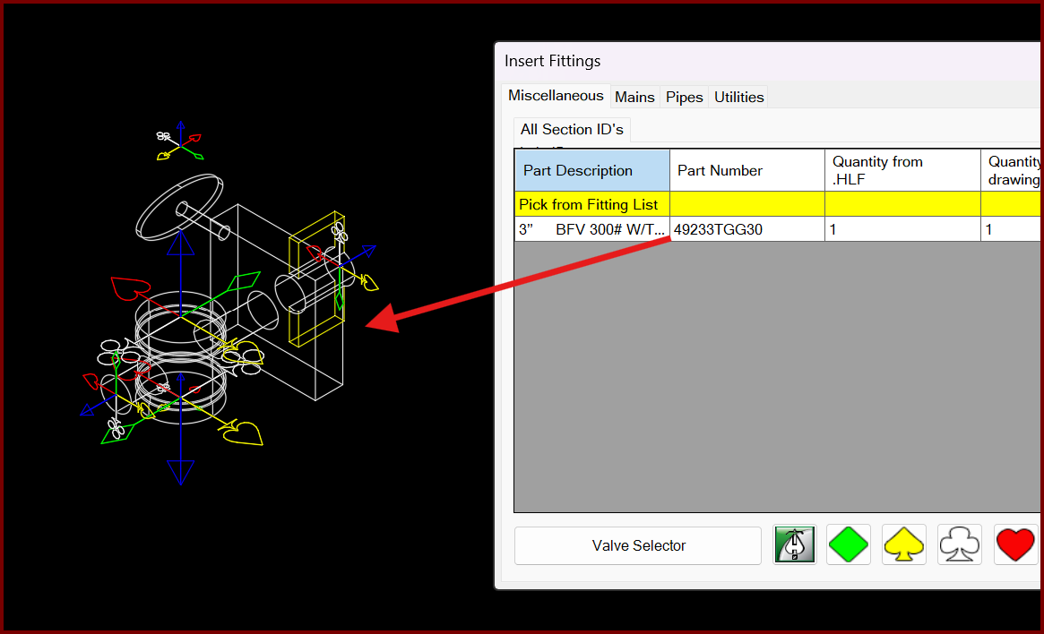 When trying to insert a valve type fitting from the parts tree, you get the error;