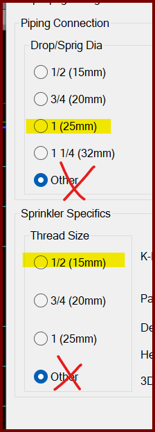 1. Example - A fitting of F was selected in the "ALTER FITTING DEFINITIONS" in the SIZING button for AutoCALC setup. The F fitting was only set up for Imperial units in HydraCALC > Utilities| Alter Pipe/Fittings. The F fitting must be set up as a metric fitting also. Example 2, the user tried to change the SCHED-10 elbow (E) to an (I), however it was input as Ei.