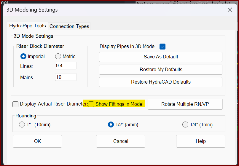 If the 'show fittings in model' checkbox is turned on in the 3D Modeling Settings window before a drawing has been autolisted, it will draw the green lines indicating errors.